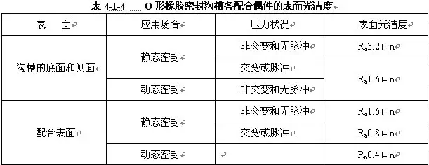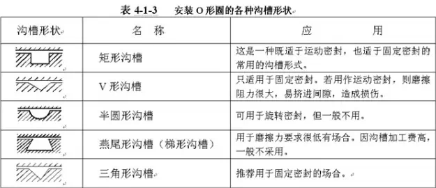 因为O形橡胶密封圈是安装在各种沟槽中使用,现将安装沟槽情况列于表4-1-3。