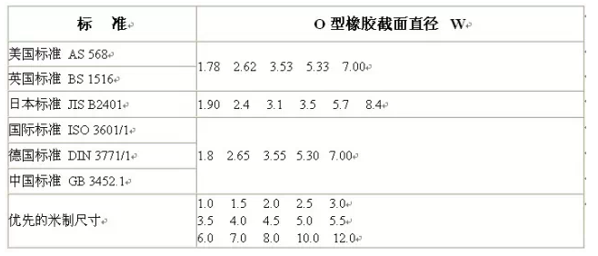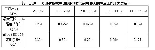 密封间隙的大小与压力等级、橡胶硬度及O形橡胶密封圈断面的直径相关情况,见下表: